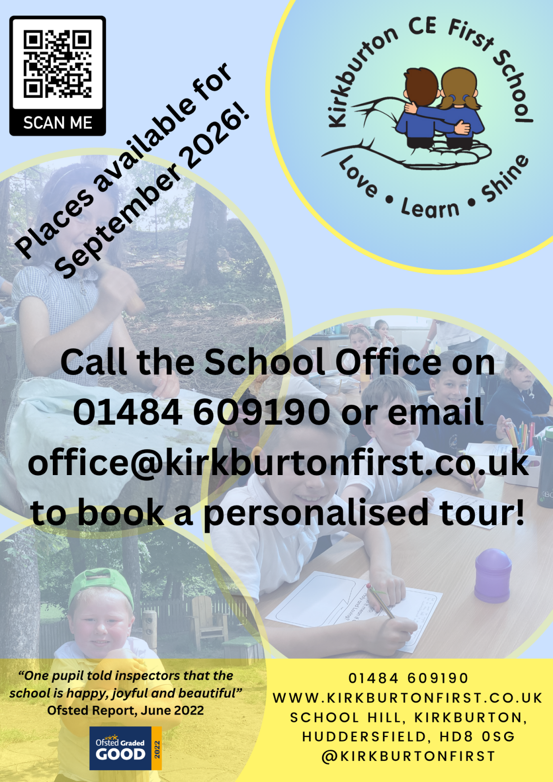 and have very positive relationships with adults. One pupil told inspectors that the school is "happy, joyful and beautiful." Ofsted, June 2022 - Kirkburton First school enables my child to flourish in many ways. The love and care school provide is evident in all schools does. Its is definitely the staff that live out this vision of the school and truly support my child to Love, Learn and Shine! Parent Questionnaire, 2024