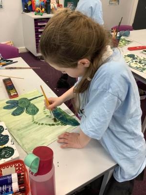 Children create paintings using various types of paints, paint brushes and other painting tools, working on a range of surfaces and at different scales. Similarly with their sketching work, children’s paint work is informed by the skills and styles of artists. Sometimes children will spend time developing a drawing first before transforming it into a painting. Children will often experiment with paint, paint equipment and painted mark making before completing a piece of paint work. Collections of class paintings often become class displays which are photographed by teachers for record keeping.