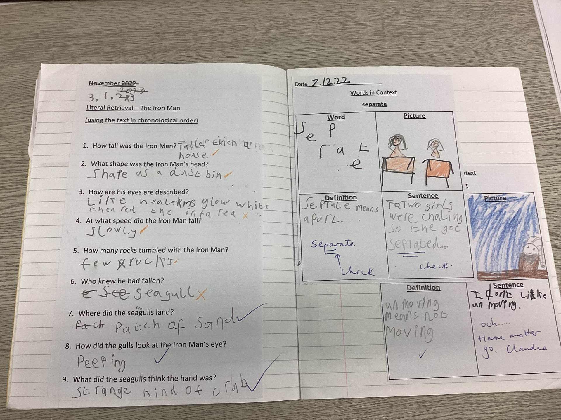 - Words in Context- Children develop their understanding of word meaning, word classes, and usage through focused questioning and discussion. This deepens their grasp of vocabulary and supports their comprehension of the wider text.